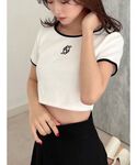 YURINA(RESEXXY)のTシャツ/カットソー「バイカラーロゴ刺繍テレコトップス」を使ったコーディネート