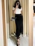 モノトーンコーデ♡ロゴでもマーメイドスカート合わせで可愛くなりすぎず大人っぽいを意識♡クロップド丈×ハイウエストでかなりスタイルアップ見えしてくれます✨️
