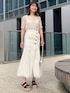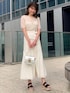 女性らしいシルエットのデニムスカートは、脚長効果抜群でヒップラインも綺麗に見せてくれます!ウエストにもゴムが入っているのも嬉しいポイントです★ハイウエストのスカートなのでトップスはコンパクトタイプがよりスッキリ仕上げてくれます☺︎今回はトレンドのポロシアーニットで爽やかな夏コーデに!!ラメっぽいニットで着心地が真夏でも着やすいドライタッチのニットです!腕まわりもお袖の透け感でカバーできるのでノースリーブが苦手な方にもおすすめです❤︎!!