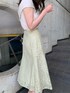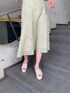 爽やかなミントカラーを取り入れたフェミニンコーデ♡トップスはリボンをひっかけた様なネックラインがポイントのリブニットです❤︎アシメネックがデコルテを更にキレイに見せてくれます◎袖はオフショルっぽく少し下げてデコルテをしっかり出すと二の腕カバーができ、顔まわりもスッキリします☺︎肌見せが多いアイテムはインナーは何を着たら悩みますよね(^^;)合わせているインナーは背中がクロスしているストラップなので、バックスタイルやチラッと見えるストラップが下着感が無くおしゃれ見えします!カップ付きで下着が無くても安定感があるので取り入れやすいですよ♩コーデの主役になっているスカートは、オパールレース素材で、くり抜かれた輪郭のデザインは立体感があり華やかさ◎!!エスニックなレースなので甘すぎなく、フェミニン初めましての方にもぜひ着て頂きたいです❤︎ニット×スカートが甘めなので、足元はウッド調のソールでカジュアルな雰囲気を足すのがおすすめです☺︎