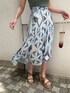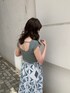 爽やかなブルー×ミントの夏コーデ❤︎華やかさのあるジオメトリック柄のスカートは女子会やデートで差が付くおすすめコーデ!ジオメトリック柄は今季トレンドなので1枚持っておくだけでおしゃれ度がUP!イレヘム裾でフロントの丈が短くなっているので、160cmの身長の私だと膝下10cmほどのスッキリとした丈感です☺︎ラメラインが入っているのでキラキラと華やかさもプラスされます!トップスは胸元がハートネックでデコルテがきれいに見えて、Vネックが飽きた方にも新鮮なデザイン!背中が空いてるトップスなので、インナーはバックスタイルもおしゃれに仕上がるクロスタイプのものがおすすめ❤︎