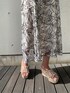 THEフェミニンコーデ♡スカートを主役に見せながらも、ラベンダーカラーのトップスで柔らかい雰囲気になるように組んだスタイリング♩ ニットは前後・オフショルで着れる3wayニットで、お仕事からプライベートまでマルチに着て頂ける優秀ニット◎ツイストしてあるネックラインはデコルテをスッキリ見せてくれます♡ 袖もしっかり二の腕カバーができる袖丈なのが嬉しいポイント◎春から夏にかけての季節の変わり目はトップスに悩むと思いますが、こちらのニットは肌寒い時はカーデやシャツなども羽織りやすく、さらっとした着心地が真夏にもぴったりです(^^)スカートは前回はMサイズを着用したので今回はSサイズを履いてみました!160cmのわたしだと、足首がしっかり見えてスッキリとしたシルエットに♩遠くからでも華やかさが分かる立体感のある刺繍は、この春夏に大活躍間違いなしのスカートです♡生地も分厚くなく、シアー素材を使用してるので爽やかな雰囲気が◎裏地も入ってるので透け感も気にせず履いて頂けます☺︎