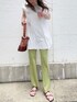 楽ちん大人デイリーコーデ♩ストレッチがものすごく効いている履き心地抜群のフレアパンツは脚のラインもキレイに!センタープレスで更に縦のラインが◎!トップスはゆったりとしたサイズ感のもを合わせるのがバランスがいいです❤︎今回は袖のフリルとバックデザインが今年っぽいブラウスを合わせました(^∇^)柔らかい生地感で、夏でもサラッと着れます◎背中の開きが気になる方は、レースのインナー合わせて背中から覗くレースをポイントにするのも◎!季節感を出すために、ビーズバッグを合わせて夏らしい爽やかなコーデに仕上げました!