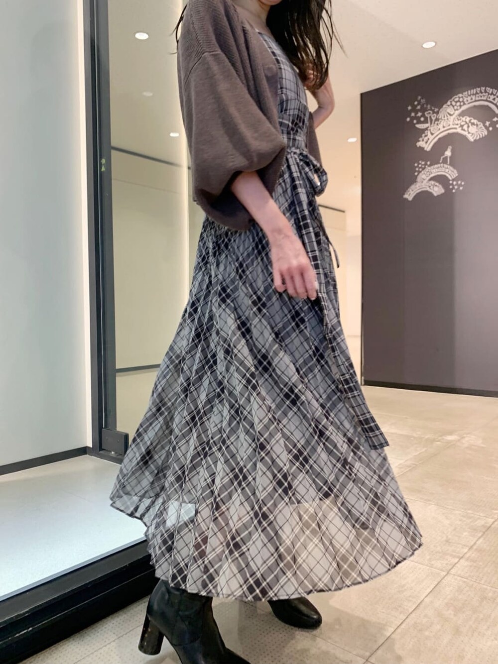 浅川晴香のワンピース「シアーチェックロングキャミワンピース」を使ったコーディネート