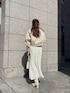 トップスはダンボール素材で肌触りが良く着心地抜群で、なおかつすごく軽いのでさらっと楽ちんに着て頂けます◡̈⃝ ボリューム袖も今年らしくて、着るだけで一気にお洒落見えするアイテムです♡ ボリュームがあるのでボトムはタイトスカートや、落ち感のあるアイテム合わせがおすすめ♫ ワンピースの上から重ねて着ても可愛いです♡ ボトムはマーメイドラインが女性らしい印象にしてくれるスカート!トップスが張り感があるものなので、スカートは女性らしいさらっとしたアイテムで合わせました♡ シューズは毎年大人気のストレッチブーツ!今年はヒールがクリアになっていてバックスタイルも可愛いです❤︎