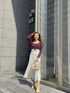トップスは後ろのデザインが可愛いニット♡ 程よくパワショルなので二の腕のライン拾いません◡̈⃝ インナーはレースのベアトップを合わせました!レースを見せて着ても可愛いです♡ ボトムはシルエットがキレイで細見えするスカート♪ リネンの生地感がナチュラルな印象にしてくれるので、決めすぎてない抜け感があるコーデにしてくれます♫ スカートのマーメイドラインを際立たせる為にトップスはコンパクトな形を、小物やシューズは同じベージュ系で合わせてみました♡