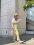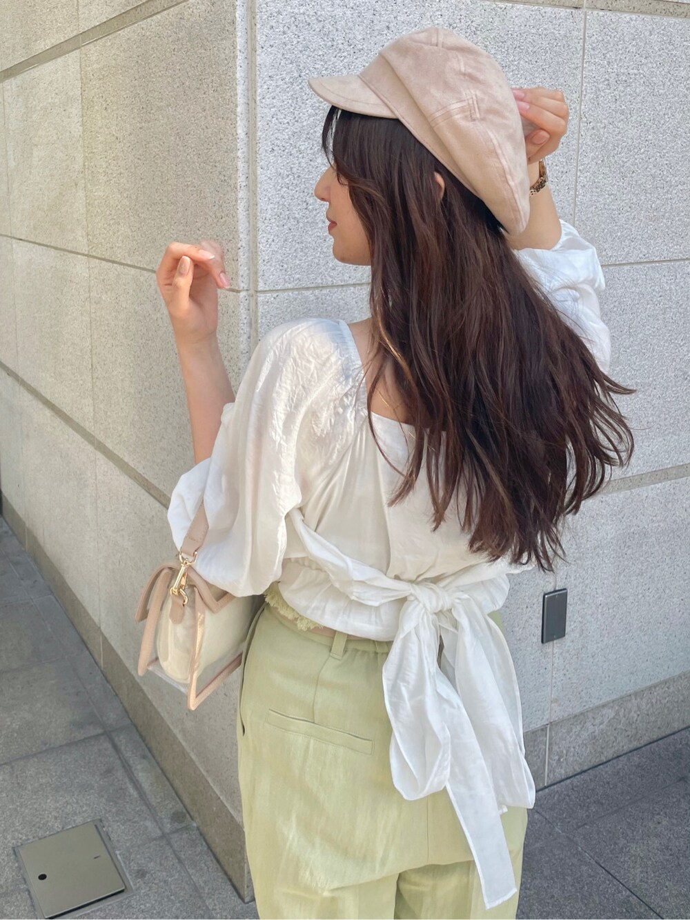 白ブラウス×リネン素材ボトムで春の定番コーデで合わせてみました♡ ブラウスは光沢があるので日に当たると少しきらっとして上品な印象に! アウトして着ても可愛いですが、今回はすっきりした印象で着たかったのとウエストのフリンジを見せたかったのでボトムインしました◡̈⃝ 袖は少し透け感があるので、インナーは肩紐無しのものを合わせて頂くか、肩紐があるものはホワイトやベージュ等落ち着いたカラーのものがおすすめです! 春らしいカラーのパンツは履くだけで一気にお洒落見えします♫ リネンや綿素材でさらっとしていて涼しく着て頂けるので、夏場にTシャツ合わせもおすすめです♡ シューズはシルバーで合わせました!シルバーはコーデのカラー選ばず使える色味なので、1足あると大活躍するカラーです◡̈⃝ クリアのヒールが春夏っぽさを出してくれます❤︎ 小物はベージュ系で合わせて統一感を出しました♡