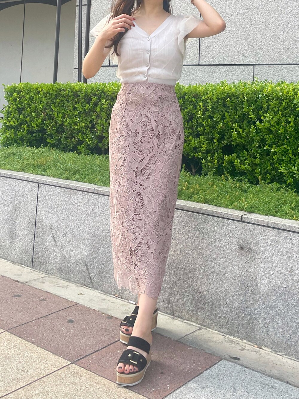 eri(MERCURYDUO)のスカート「フラワーケミカルレースタイトスカート」を使ったコーディネート