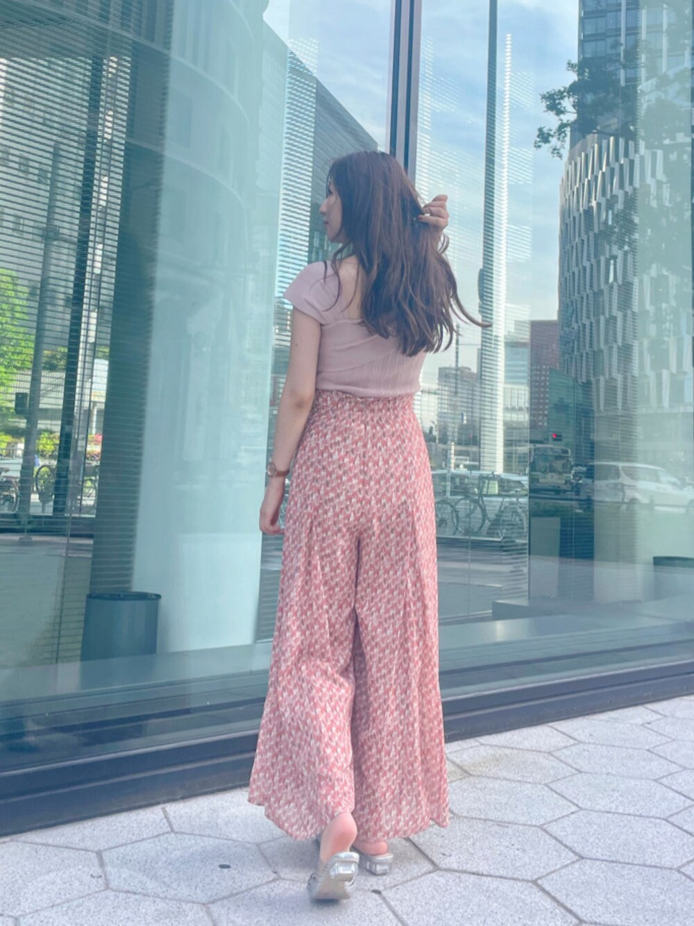 【ピンク×オレンジの華やかcode♡】トップスはmercuryならではの華奢見えニット。デコルテが開いているのですっきりした印象になります♡ 丈感も長過ぎず短過ぎないのでアウトして着ても◎ 生地も柔らかいので着心地抜群のアイテムです。華やかな印象にしたかったので、オレンジのジオメトリックパンツを合わせました!とろみのある生地感やボリュームのあるタックで、スカート見えするアイテムです。サスペンダーが取り外し可能になっています♡ ハイウエストデザインなので脚長効果も抜群◎