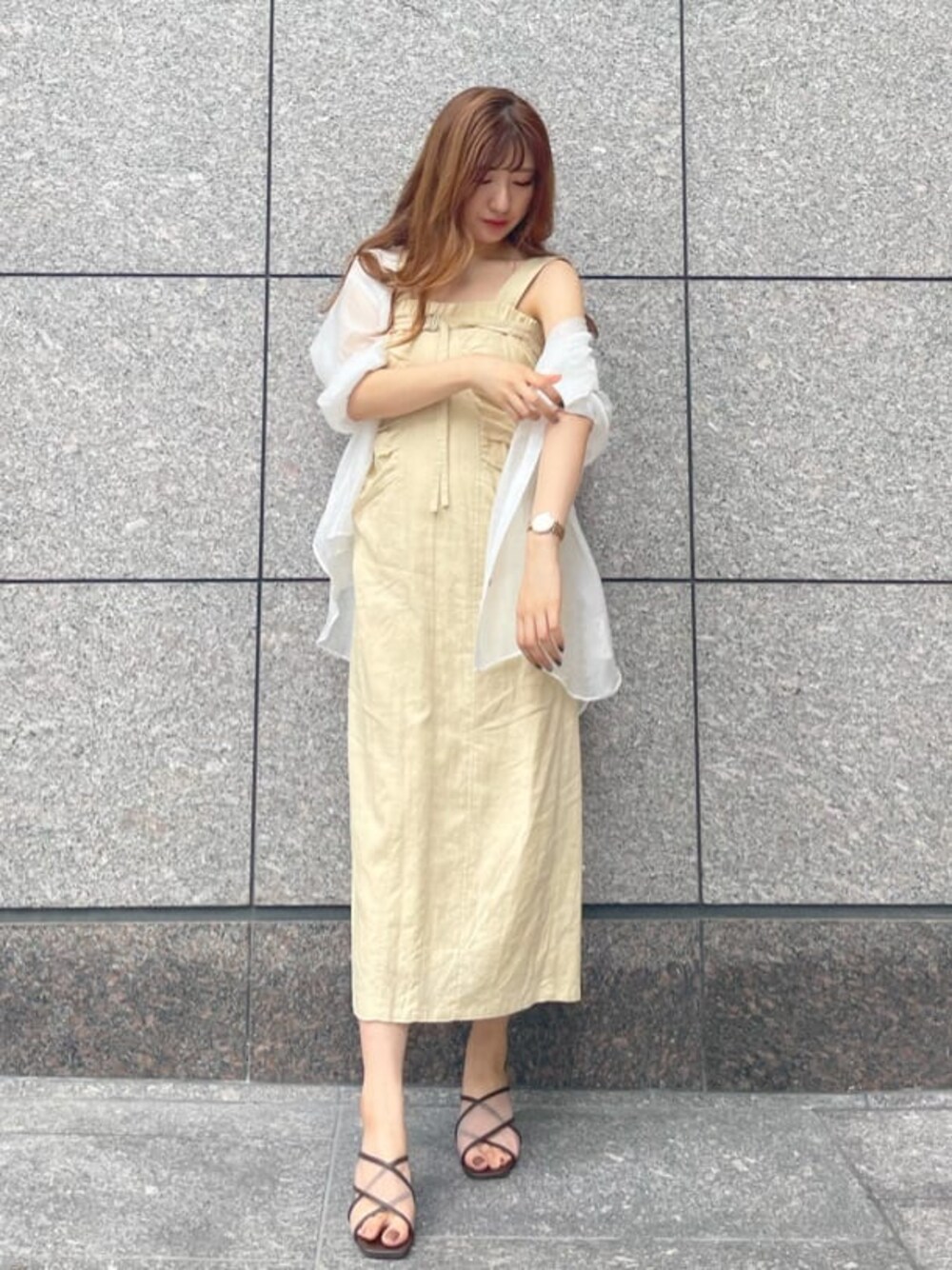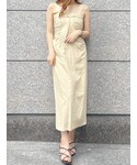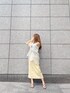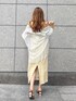 【トレンドカラーで肌見せコーデ♡】トレンドのイエローカラーのワンピースを、夏らしく肌見せを意識してスタイリングしました◡̈⃝ フロントのギャザーやバックシャーリングがIラインの中にメリハリをつけてくれて、女性らしいシルエットを作ってくれています。ショルダーを取り外して、リブニットを合わせたり、Tシャツでカジュアルダウンするのも◎ 1枚で華やかになるアイテムなので、夏のご旅行ワンピとしてもおすすめです。
