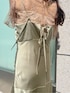 【上品なサテンマーメイドドレス♡】艶があり、とろみもあって上品なMERCURYDUOのサテン生地が大好きで、新たにワンピが入荷した為着用しました♡ レーストップス、ワンピース、インナーベアの3点セット。もちろん別々で着回し◎なので、レーストップスとインナーベアに別にパンツやスカートを合わせるのもおすすめ。レーストップスのふわっと広がる袖の形も、二の腕が華奢見えしてお気に入りです。ワンピースはニットやシャツをレイヤードして着るのも◎ 長めにゆるっと着たかったので、Mサイズをチョイス。158cmでフラットシューズでも引きずらない丈感でした。