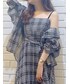eri(MERCURYDUO)のワンピース「シアーチェックロングキャミワンピース」を使ったコーディネート