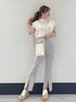 【王道!大人フェミニンコーデ♡】ブラウスは今までになかった2wayデザインにビックリ!!1着で袖の印象を変えられる他にはないデザイン。袖にボリュームがあるので腕をすらっと細く見せてくれます。二の腕をあまり出したくない方へもおすすめ!デザインが内側へ向けて入っているので、全体的に華奢に見えします♡ ホワイトは透け感があるのでインナーは必須。 トップスが甘めなので、ボトムはパンツを選びました。腰回りはぴったりして細く、裾は少し広がったフレアでスタイルアップ効果抜群のシルエット。また、脚長に見せてくれるハイウエストです。店頭でご試着頂いた際、形のキレイさに驚いてくださる方が多いアイテムです。ストレッチも効いているので着脱しやすく、着心地も楽ちん◎ スリットも入っているので、かちっとしすぎず、抜け感をプラスしてくれます♡