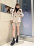 【お洒落見え♡ジャケットコーデ】ジャケットはなんとジレとのセットアイテム。ジャケットの上からジレを付けるとウエストをきゅっと締める事が出来、スタイルアップ効果に◡̈⃝ ジャケットの中に入れても◎ですし、ブラウスやワンピの上に重ねるのもおすすめ。外してシンプルに着てももちろん可愛いです♡ 柔らかい生地感で軽いので、さらっと楽ちんに羽織って頂けます。すっきりした印象で着たい方は少し袖をまくるのが◎ 小柄な方・華奢な方も少しまくって手首を見せた方が、だぼつく印象にならずおすすめです。同素材のボトムを合わせてセットアップで着用しました。マーキュリーデュオのショートパンツは、子どもっぽく見えないデザインポイントが詰まっているアイテム! ハイウエストや裾が少し広がっているシルエットがスタイルアップ効果抜群。キレイなシルエットを大事にしたかったので、トップスはコンパクトなリブニットを合わせました。マーキュリーデュオ定番アイテムで、ボトム選ばず使える万能タートルニット。リブは伸縮性があるので着脱しやすく、肌触りも良いので着心地抜群です。秋冬にマストなアイテム!足元はトレンドのサイドゴアブーツをチョイス ◡̈⃝ チャックはなくすっぽり履くデザインです。