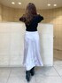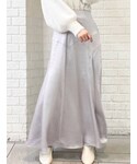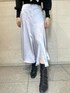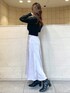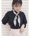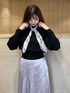 【トップス】万能にたくさん着回せるアイテム♡ 袖口と裾が太めのリブ切替なのもポイント。手首をきゅっと華奢に見せてくれたり、裾のリブはコルセットのような役割をしてくれて、ウエストを細く見せてくれます。アウトしても可愛いデザイン◎ 少しゆったりしているサイズ感なので、中にインナーも着込みやすいです。スカーフのカラーはニットによって異なります◡̈⃝ 【ボトム】少しとろみのあるサテンが上品なスカート!放射状にカッティングされており、歩くとその形に広がるシルエットがお気に入りポイント♡ さりげなくスリットも入っているので、チラッと見える足が女性らしい印象にしてくれます◡̈⃝ 季節問わずお使い頂けるので、春夏はブラウスやTシャツ、秋冬はニットやパーカー等いろいろな着こなしをして頂けます♡