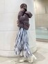 【トップス】マーキュリー定番シャギーニット♡ Vネック・ボートネックの前後2wayになっています。ハイネックタイプもありますが、スッキリした印象で着たい、首詰まりが苦手な方はこちらがおすすめ!2wayなので前後入れ替えて着れるのも嬉しいポイント♡ ウエストはコルセットのような太めのリブ切替になっているので、きゅっとくびれを作ってくれます。ボトムアウトしても可愛いシルエットです♡ ふわふわの肌触りで、全くチクチクもしません! 個人差はありますが、肌が弱い方も比較的着て頂きやすいです ◡̈⃝ 【ボトム】きらっと上品な光沢と落ち感のシルエットに一目惚れしたアイテム♡ 動くたびにさりげなくキラキラ光る艶っぽい素材。プリーツの幅が上と下で違っているので、よりふわっとした動きが出ます♡ フロントが短いので、秋冬はブーツ合わせでもすっきりした印象に。小柄な方が着用しても足首が見えて重く見えません◡̈⃝ ウエストは後ろがゴムになっています。1年中着まわせるアイテムなので春夏はブラウスやTシャツ、秋冬はボリュームのあるニット合わせも◎ 1枚だと少し寒いので真冬はタイツ合わせがおすすめです♡【アウター】今年も入荷しました!神ダウンコート♡ ころんとした丸いシルエットが、野暮ったくならず女性らしい印象に。ショート丈なのでスカートやワンピース合わせでもバランスの取りやすい丈感◎ そして何より軽くて暖かいです♡ 今までになかったブラウンカラーが気になったので着用しました ◡̈⃝