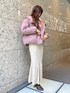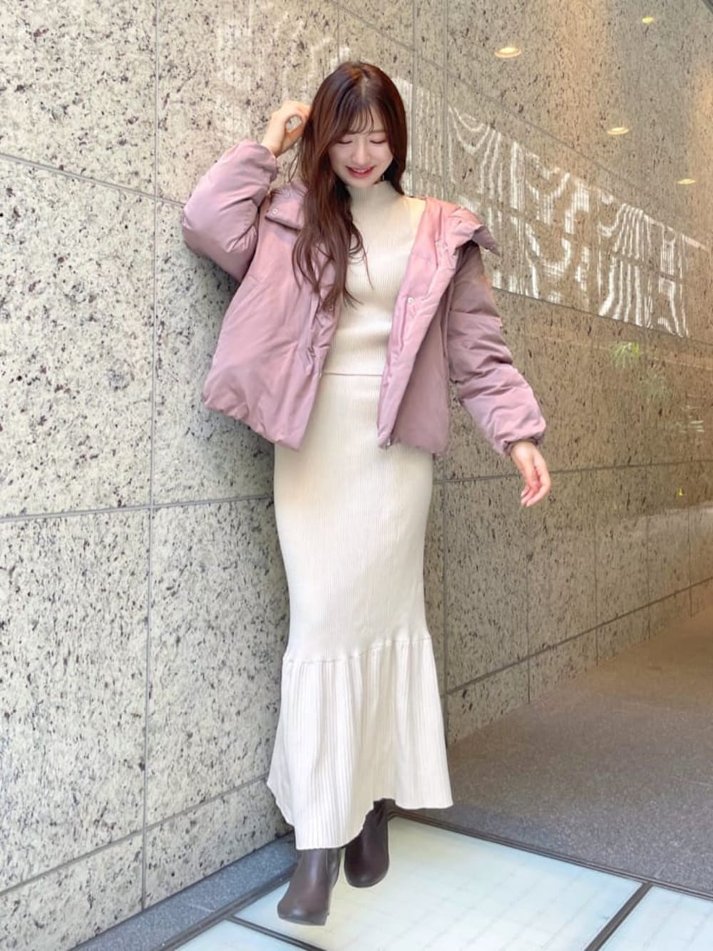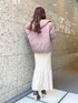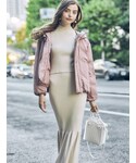 毎年大人気福袋♡ 着回し抜群なセットアップは別でレーススカートやワイドパンツを合わせたり、ボトム選ばず万能に使えます。マーメイドスカートも着回し万能アイテム。パワショルの肩の切替が内側にあり肩幅を狭く華奢に見せてくれるので、個人的にハイネックが苦手な私でもキレイに着れました♡ 生地は柔らかく伸縮性があるので着心地も抜群。アウターはころんもしたシルエットが可愛くて女性らしい印象にしてくれます♡