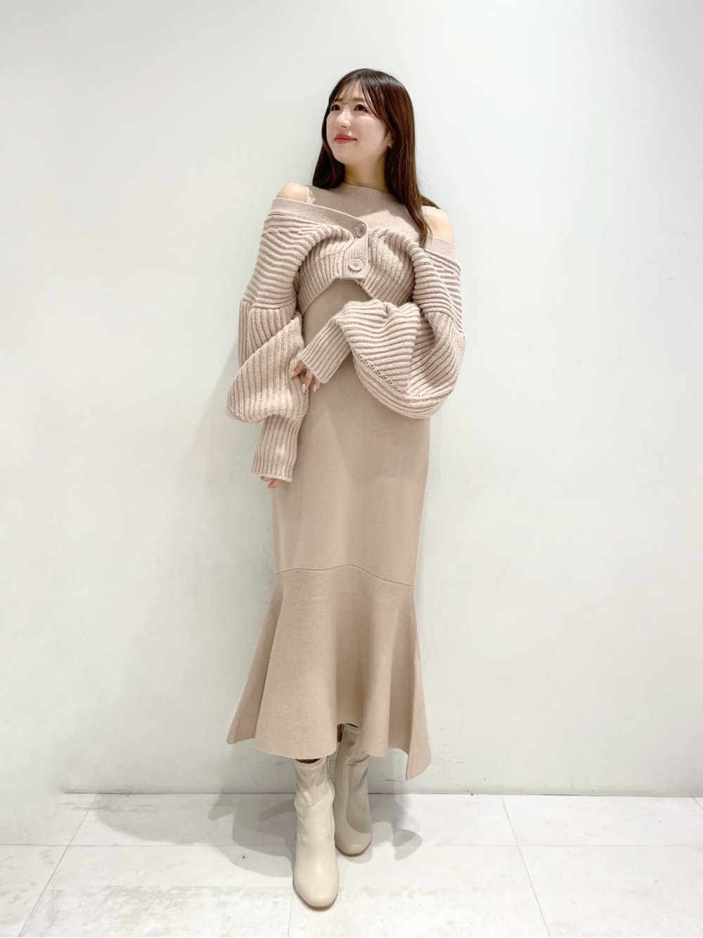 eri(MERCURYDUO)のワンピース「3WAYバックディティールカーデセットニットワンピース」を使ったコーディネート