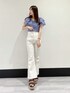 新希咲乃さんコラボアイテムをパンツ合わせで着回しました♡ バックリボンとカットワーク刺繍が華やかなので、コーデを一気にお洒落見えさせてくれます。襟ぐりはゴムが入っており、オンオフショルダーどちらでも◎ ファスナーで着脱できます ◡̈⃝ ボトムはハイウエストとフレアシルエットでスタイルアップが叶うパンツ。ポケットが高い位置にあるのも脚長効果が◎