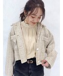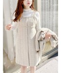 オーバーサイズのジャケットは少し抜き襟で羽織るのがすっきり見えておすすめ。ショート丈なのでスタイルアップに繋がります◎ 袖はゆるっとしているので、ボリュームのあるトップスの上からも羽織って頂けます◡̈⃝ ジャンスカは切替位置が高いので脚長効果が♡ ニットやブラウス、インナーを変えて長く着回しできるアイテムです♫