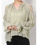 eri(MERCURYDUO)のシャツ/ブラウス「キャミ付配色シャーリングギャザーブラウス」を使ったコーディネート