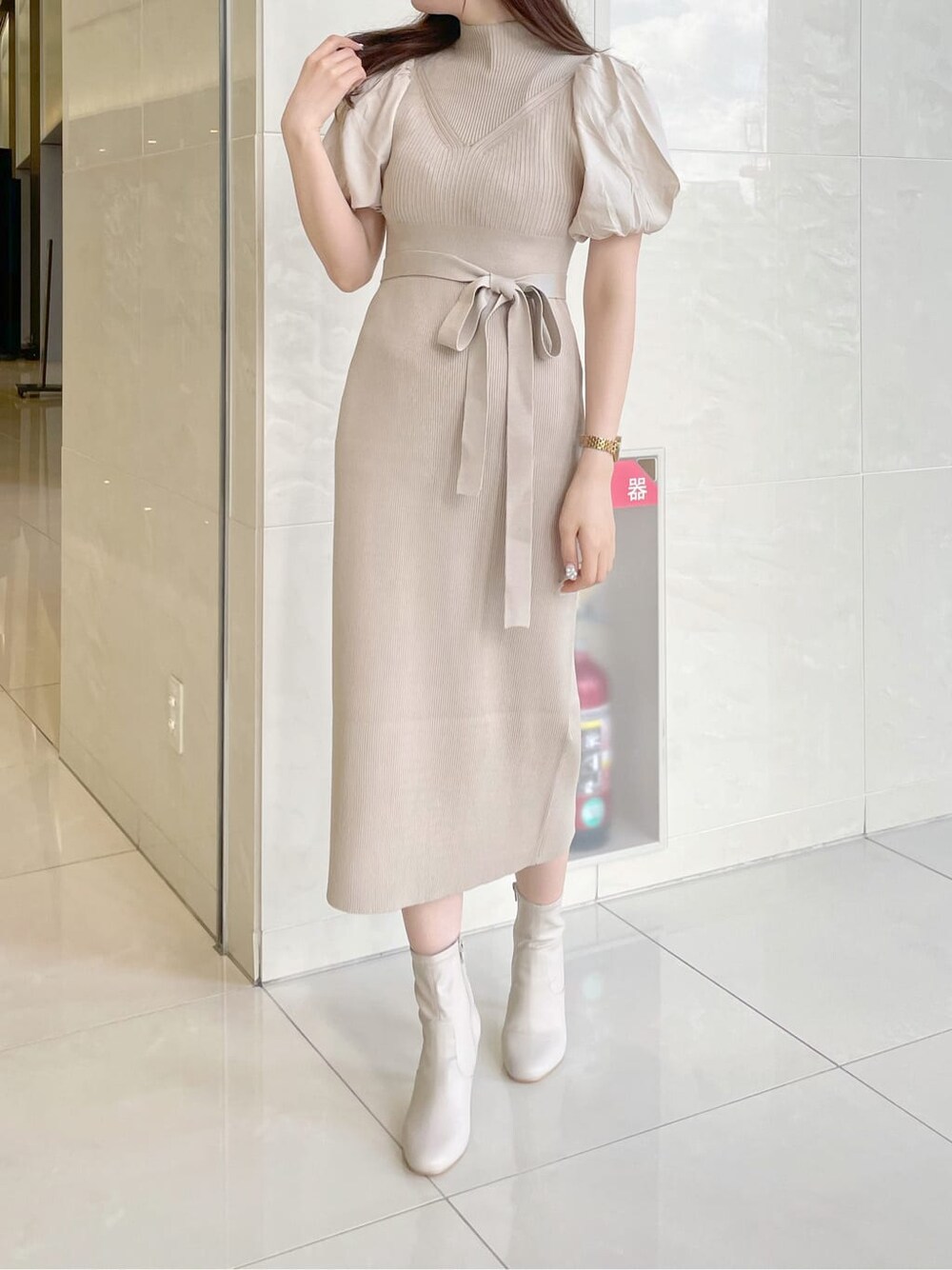 ハイウエスト切替なので脚長効果抜群。柔らかい生地感なので、タイトシルエットですが動きやすく着脱もしやすいです♡ 肩のスリットも開きすぎていないので、インナーの肩紐等も気にせず着用できます ◡̈⃝!