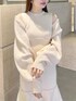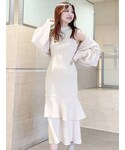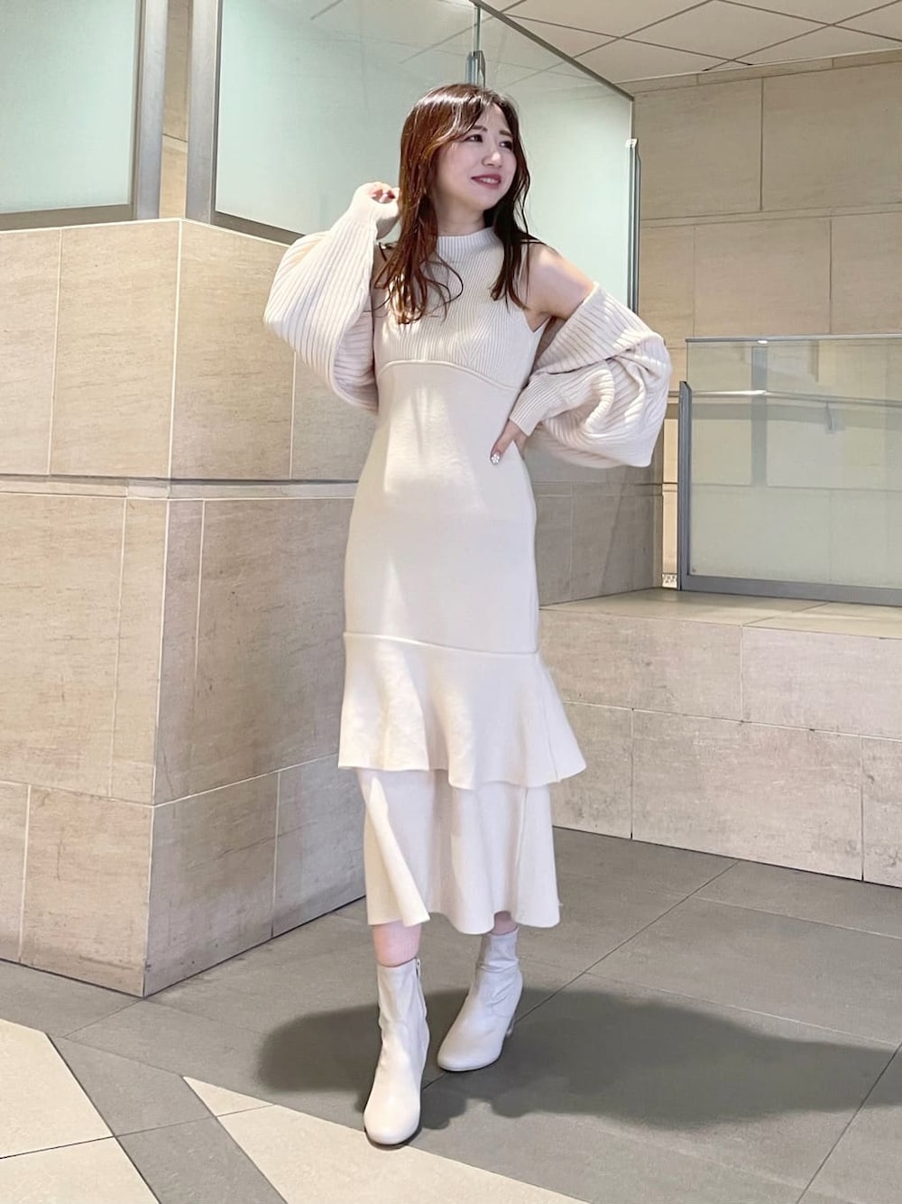 ゆるっと肌見せのあざと可愛いワンピース♡ 裾のティアードが華やかな印象にしてくれます ◡̈⃝ オフホワイトは少し黄味がかったクリームっぽい柔らかいカラー。ワンピ1枚でも胸下の高め切替のおかげで、スタイルアップして見せてくれます♡