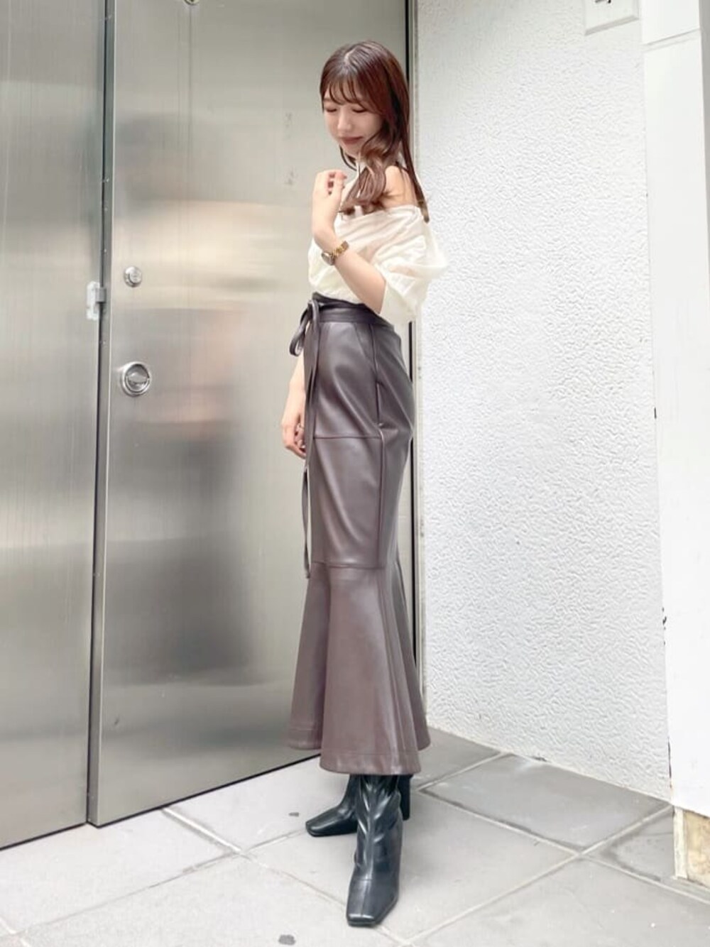 トップスは短丈なのでハイウエストアイテムとの相性抜群♡合わせるだけでスタイルアップして見せてくれます◎ ボトムは柔らかいレザーで重さも軽いので、さらっと楽ちんに着て頂けます♡ ボディラインのシルエットも拾いすぎないので、身体のラインをあまり出したくない方へもおすすめ◡̈⃝