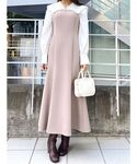アウターはマーキュリー定番アイテム。 ショール見えするデザインが子どもっぽくならず、 大人かわいい印象にしてくれます。 合わせたワンピは美シルエットで細見え効果抜群! 高い位置でウエストがくびれているので、 スタイルアップ効果も◎
