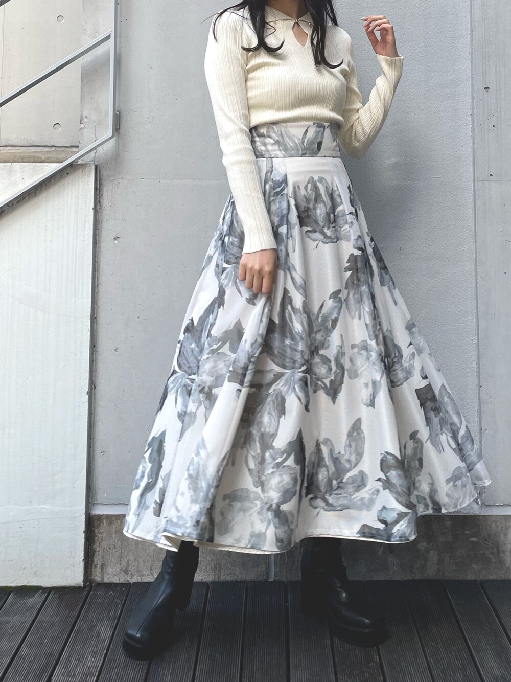 1着でがらっと印象が変わるアイテムの 組み合わせ◎ トップスはボタンの開け閉め、前後2wayで 万能に使え着回し抜群です! ボタンがコーデのアクセントにも。 スカートはリバーシブルとメッシュフラワーがポイント。 ボリュームフレアも上品な印象に!