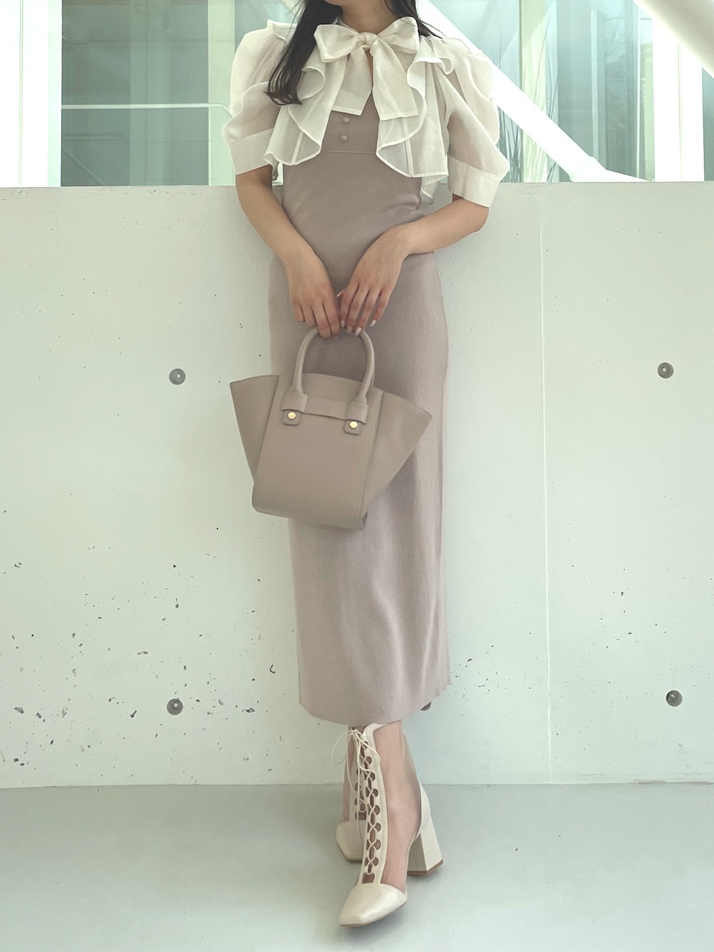 ワンピとボレロは前後2wayなので、印象をがらっと変えていただけます。ボレロはホック付きなので、リボンは綺麗に結んだまま着脱出来るのがポイント。ショート丈でスタイルアップ効果も!