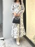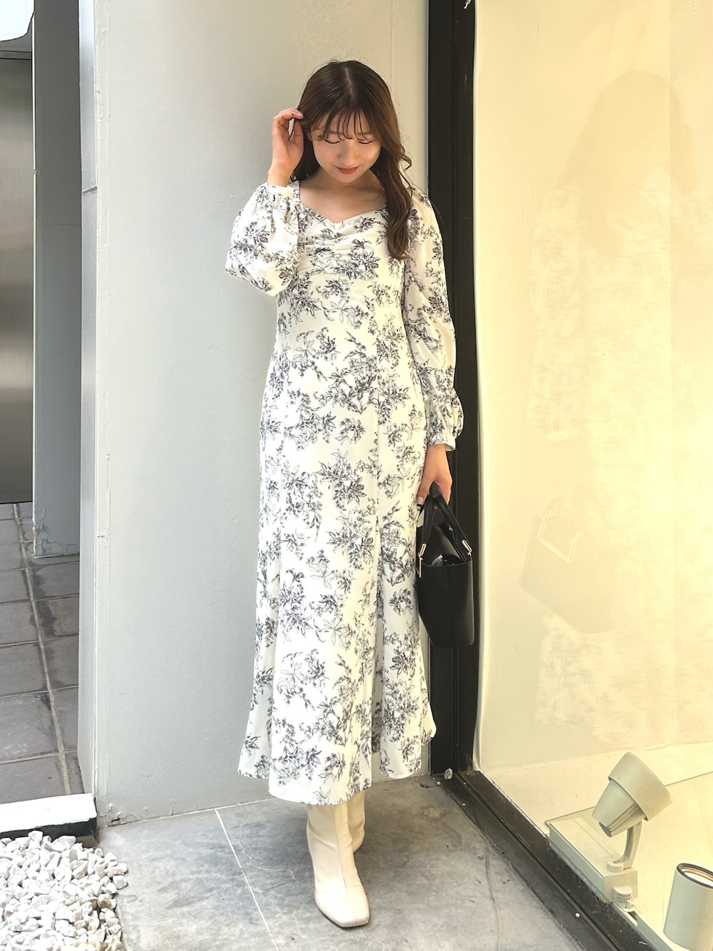 デコルテのカッティングが上半身を華奢に、女性らしく見せてくれます。首もすらっと長く見えるのもポイント。二の腕のラインも拾いません。トワルドジュイ柄で幼くならず、大人フェミニンな印象で着用いただけます。