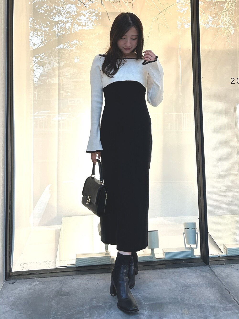 eri(MERCURYDUO)のワンピース「3WAY配色ストラップバッククロスロングスリーブワンピース」を使ったコーディネート