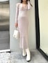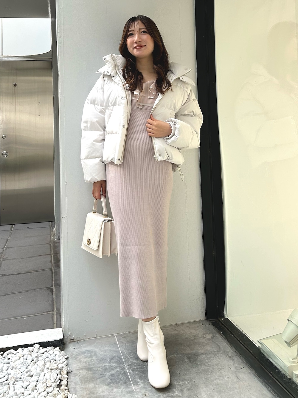eri(MERCURYDUO)のワンピース「異素材ラッフルバックリボンニットワンピース」を使ったコーディネート