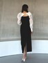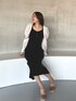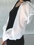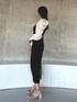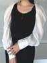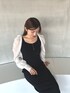 セットアイテムのワンピなので、春先〜秋口まで長く着用できます。ボレロなしのワンピの上にカーディガンを羽織ったり、シアーシャツ合わせも◎