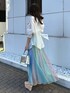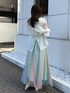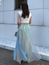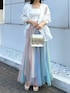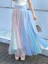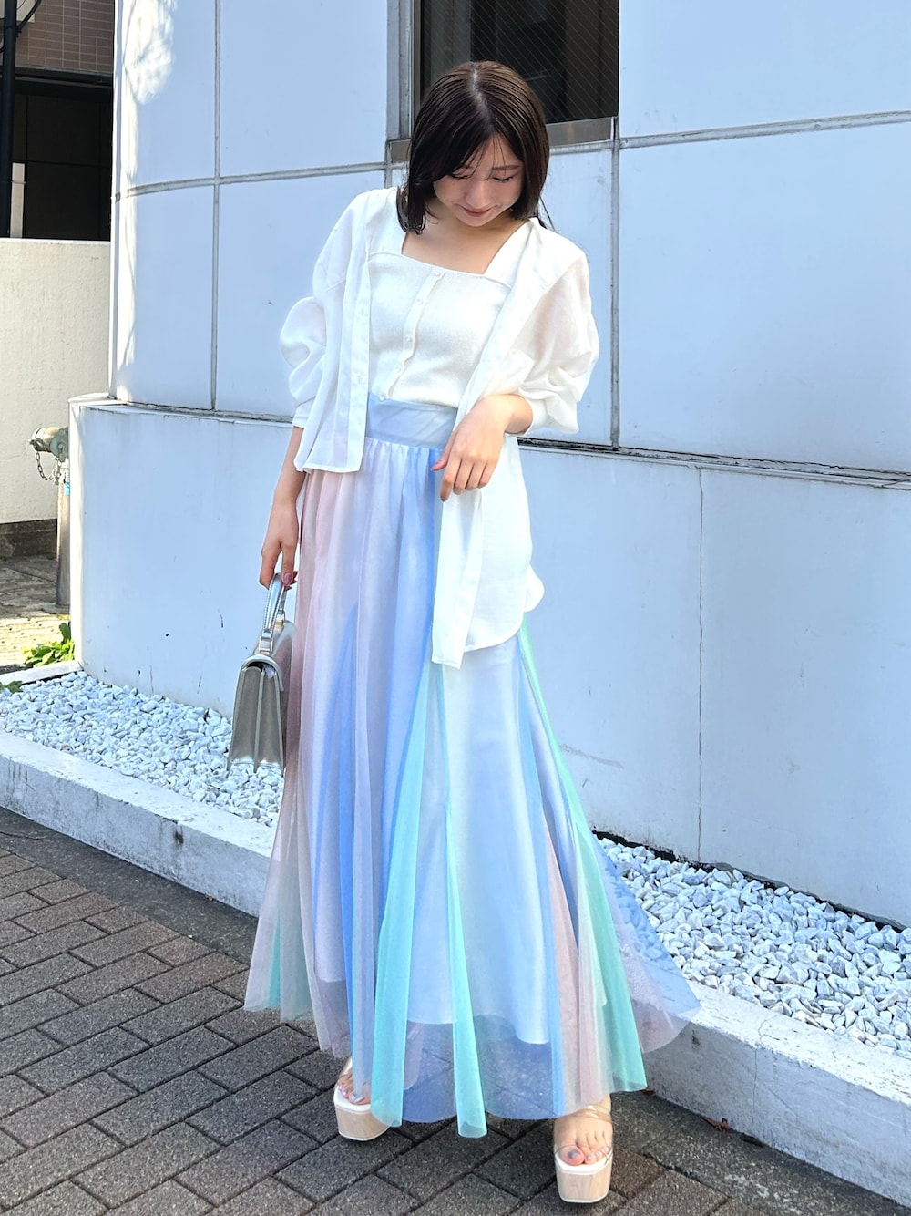 スカートは揺れる度カラーの見え感が変わるのが個人的にお気に入りポイント◎ シアーシャツ合わせで春夏らしく爽やかにまとめました。