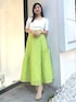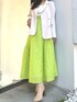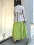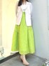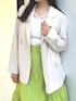 さらっとして軽い生地感のジャケットは夏手前まで長く着用できます。少し腕をまくったり折って、手首をだして着ても◎ 後ろのデザインがコーデのポイントに。フレアスカートはボリューム感が上品なアイテム。すっきり着たい方はトップスはコンパクトなものを合わせるときれいめコーデにおすすめです。SM両サイズぺたんこシューズでも着用できました。