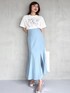 ショート丈のTシャツはボトムアウトしてもバランス良く着ていただけます。スカートのレースアップをポイントにしたかったので今回はインして着用しました。スカートは自身のウエストとヒップの大きさに合わせて調整できるレースアップデザインなので、好みに合わせて変えられるのがポイント◎定番アイテムで着回し力も抜群です。
