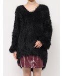 毛足の長いシャギーは柔らかく、肌触りも◎ボリュームがあるデザインですが首周りが開いているので膨張せず、抜け感をプラスしてくれます。ゆるっと着てデコルテを見せることで女性らしさも◎合わせたボトムはパンツになっているのが着やすいポイント。年中使いやすいさらっとした素材です。