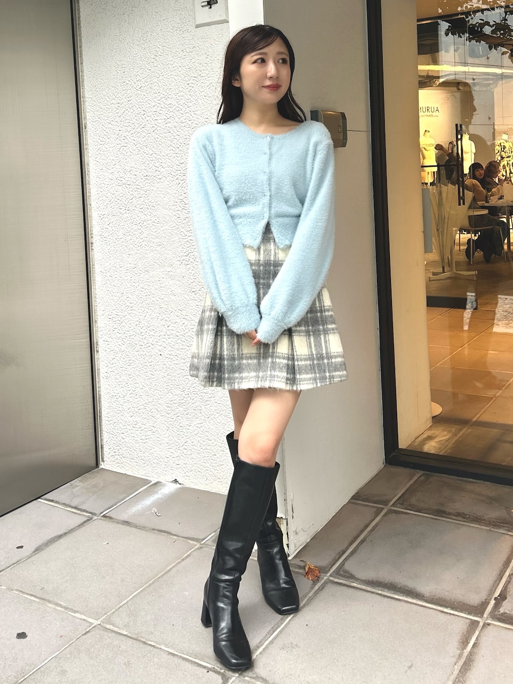 着心地抜群のふわふわシャギーカーディガンはマーキュリーデュオの定番人気アイテム。毛玉にもならず、ちくちくもしません。裾は切替があるのでボトムアウトして着ても◎