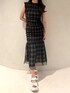 チェック生地にチュールが重なったデザインが印象的なワンピース。 シャーリングがしっかり入っていて伸縮性があるので、着心地も楽ちんです。 マーメイドシルエットで女性らしさもプラスしてくれます。 シアーシャツやカーディガンを合わせても◎ きれいめな華奢サンダルや、あえてスニーカーで合わせて崩しても可愛いです。
