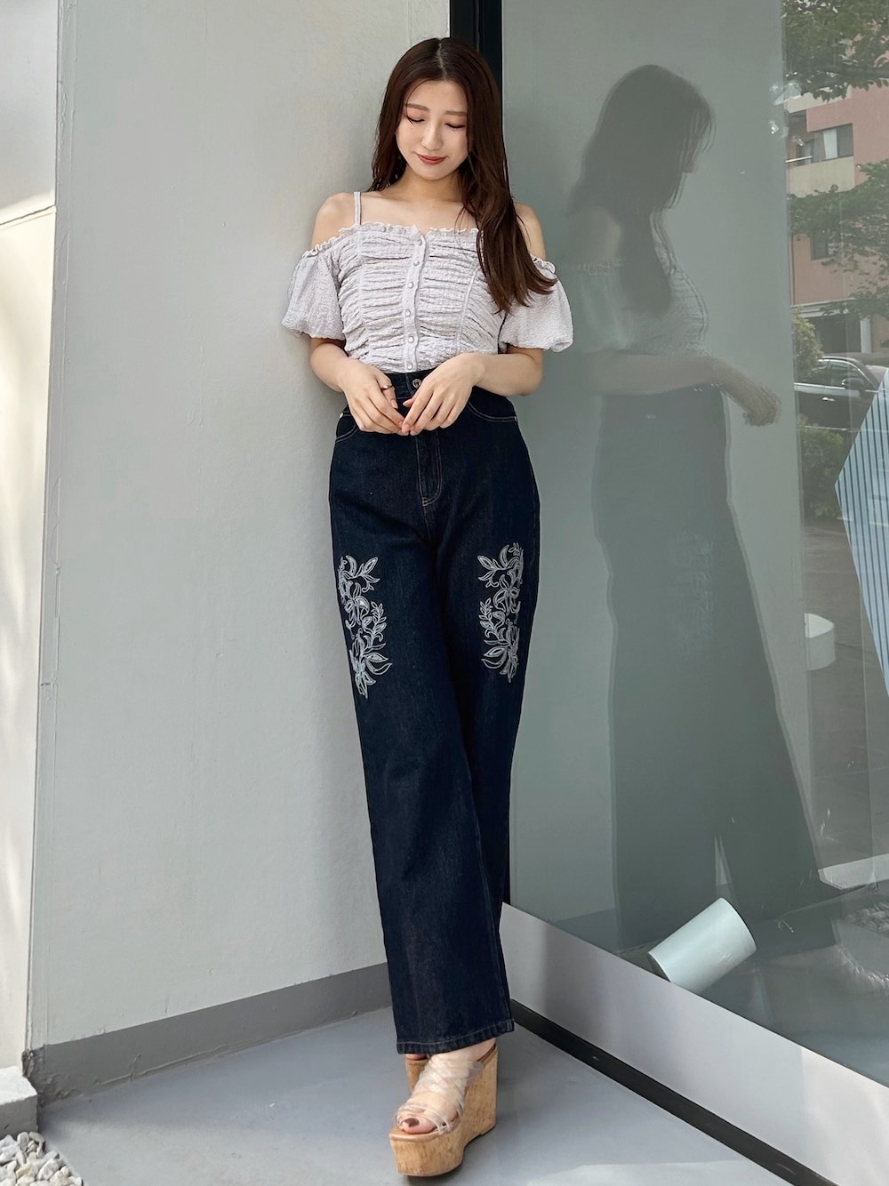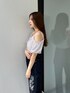 トップスは伸縮性があり着心地も◎ デニムはもちろん、柄デザインのボトムと合わせても可愛いです。