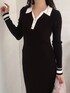 バイカラーデザインと程よいマーメイドシルエットがポイントのワンピース。 ハイウエスト切替で脚長効果も◎