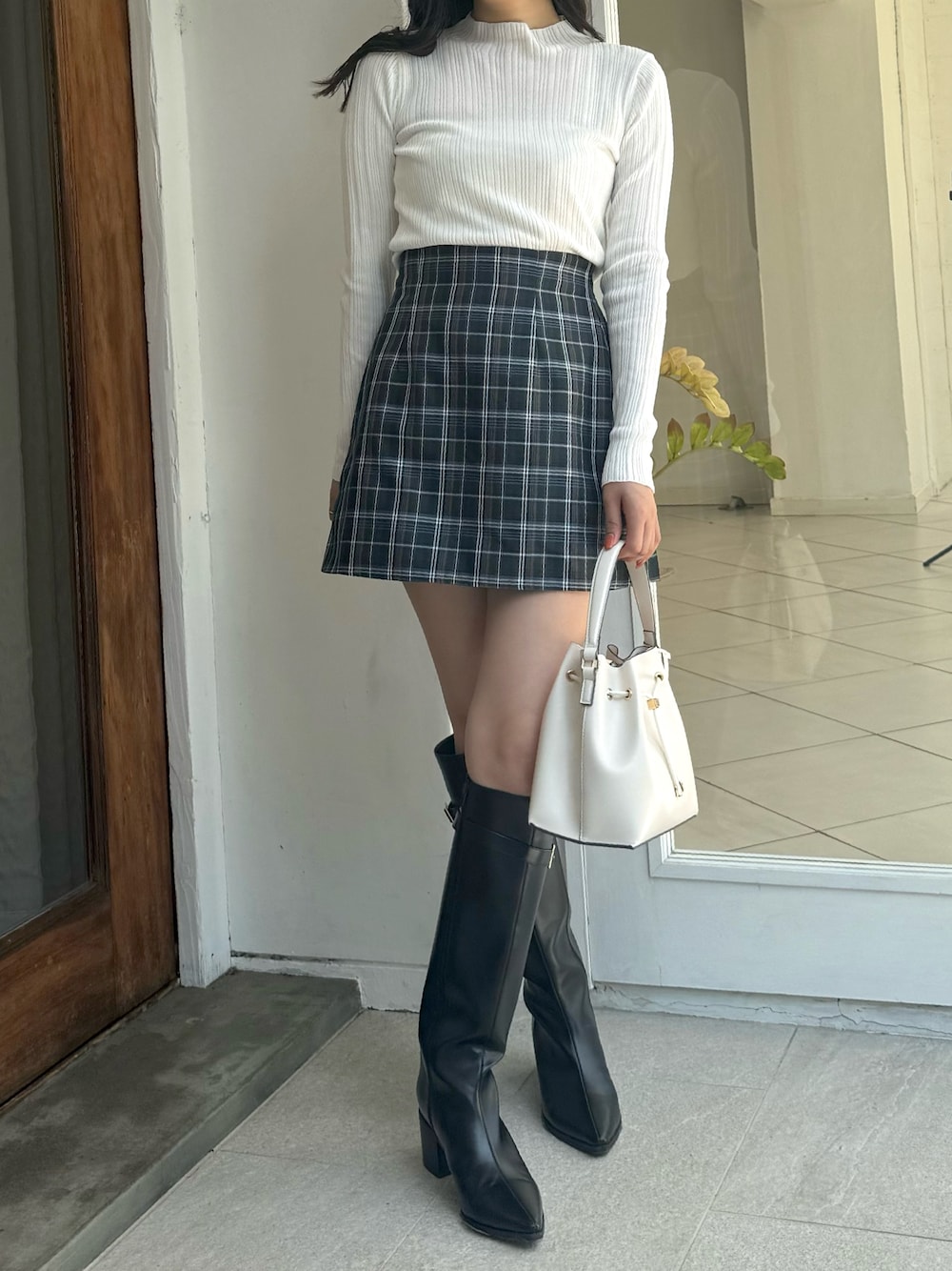 少し薄手のニットトップスは、秋にぴったりのアイテム。 縦リブですっきりした印象になります。 合わせたスカートはロングスカートとセットのアイテム。 取り外してミニとしても着用可能です。