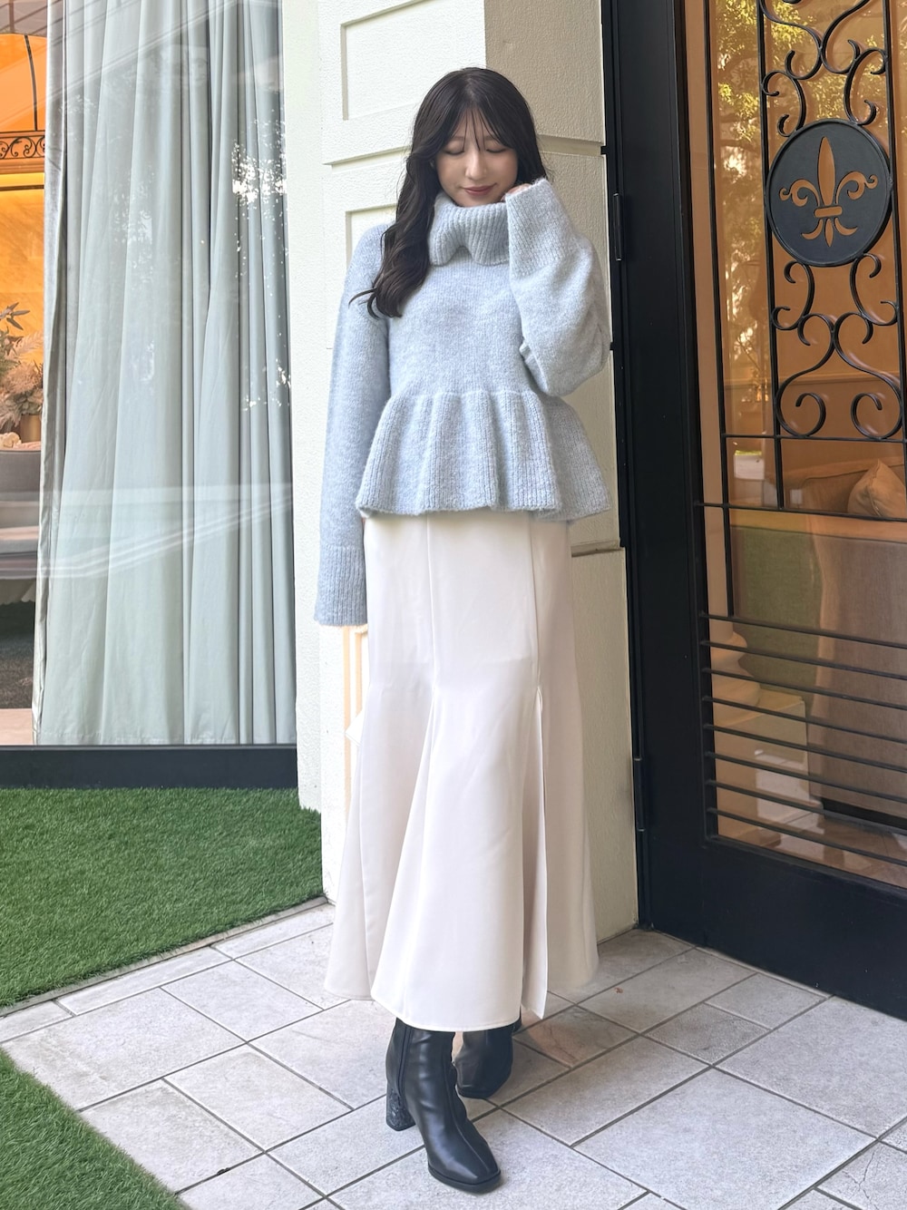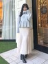 WEB限定カラーのグレーを着用しました。 ふわふわのニット素材がシーズンムード高めるアイテムです。