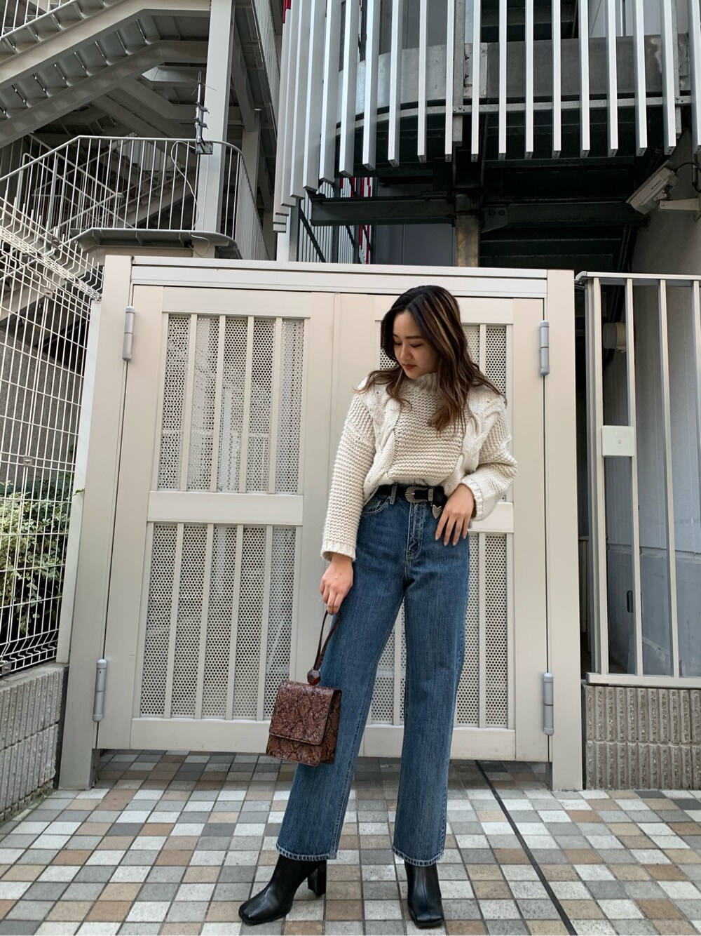 くすみカラーがポイントのショートニットはサイドの大振りなケーブル編みがアクセントになり春先から1枚で着ても可愛いアイテム☺️! 袖の丈感も長すぎないため、アウターから出る心配もありません♬︎♡ 綿100%のストレートデニムは厚手素材を使用しているので綺麗な形をキープしてくれます!! シルエットが綺麗なので美脚効果はもちろん、ストレートの形により体型カバーも出来ちゃいます♡ シンプルなコーデにパイソン柄のBAGを持つだけで お洒落コーデに仕上がります!