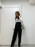 レザーベルトパンツを使ったモノトーンコーデ♡ ゆるっとしたシルエットなので体型カバーにもなりハイウエストでスタイルを綺麗に見せてくれるパンツ♫!! レザーベルトも細めのデザインにより主張が強すぎずさり気ないウエストマークになり腰位置を高く見せてくれます♡ ボトムがゆるっとしてるのでトップスは少しタイト目なロンTEEを合わせメリハリを付けてみました☆ BAGで差し色のグリーンを合わせることでトレンド感のあるコーデにも◎
