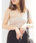 \適度な肌見せのカジュアルコーデ/ 【トップス】ニット素材のキャミソールはショルダーがアシメデザインになっていて背中にはさり気ないバックオープンが施されているオシャレな1枚! タイト目なお作りなのでフィット感がとてもあり、前屈みになっても胸元は気にせず着て頂けます☺️ パットも厚めでしっかりカバーしてくれるのもポイント!タック編みなのでシンプル過ぎず存在感のあるニットキャミになっています♡ 【ボトムス】こちらのデニムは履けば履くほど馴染みがでて履きやすくなるデニム!360℃どこから見てもスタイルよく見せてくれるデニムで、スタッフ支持もすごく高いです♡ 全体的にシェービング加工が施されているのでカジュアル感が強めのデニムになっています♪ 丈感が多少長めなのでヒール合わせがオススメです! 差し色でクリアバックのイエローを合わせることで夏らしさも◎ こちらのバックは3way使用で中のポーチを取り外すとポーチ単体でもお使い頂ける万能アイテムです☺️!カラー物ですが、クリアバッグなのでデイリーに持ちやすいBAGです♪