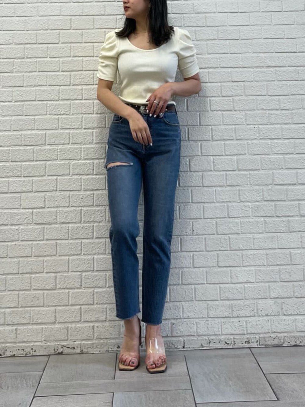 yumeka(EVRIS)のベルト「メタルバックルクリアベルト」を使ったコーディネート