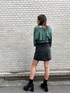 レイヤードニットを主体としたデートコーデ♡ 【トップス】今季トレンドのレイヤードデザインが特徴のニットトップス♪チェーン付きのボレロは前後2wayでお使い頂けてお持ちのキャミソールとレイヤードで合わせても可愛い万能アイテム! モチっとした生地感で厚手過ぎないので秋に1番着やすい素材感になっています! 色味も秋カラーの深みがあるグリーンが可愛いですよね♪ゆったりとしたサイズ感なので二の腕カバーにもにも◎ 【スカート】EVRIS大人気アイテムのデニムスカート!こちらは定番アイテムでなによりシルエットがとても綺麗なんです♪台形なので裾が少し広がっていて太ももを華奢に見せてくれます♡ 短めなので163cmの私はMサイズで長さが丁度良いくらいです! デニムなのでオールシーズン履けるのも◎ 小物は全てブラックで揃える事でニットの存在感が出てまとまります♪ チャンキーブーツは凄く軽く足首周りがフィットしている事で美脚効果が出るのでミニボトムには欠かせないアイテムです♡